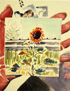 Pistän merkkejä sinne tänne III / I stick signs here and there III 2023 watercolour and ink on cotton 34 x 26 cm